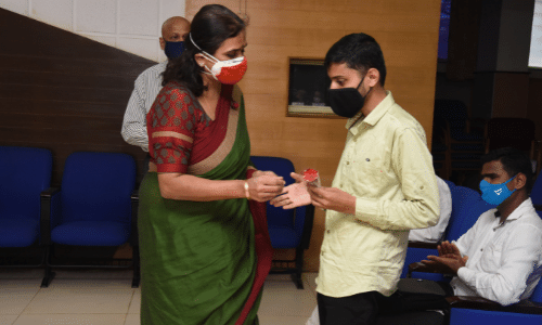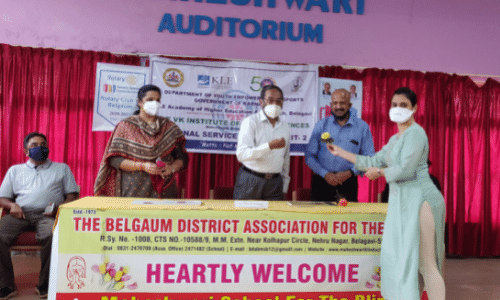 World sight day, a NSS activity of our college was hosted by Department Of Orthodontics, K.L.E. VK Institute of Dental Sciences jointly with Rotary club of Belgaum on 13th of October ’20 at Maheshwari School for Blind. On the occasion, Department of Orthodontics and Rotary club of Belgaum handed over Tooth brushes and tooth pastes for students of Maheshwari School for Blind and urged the students to go through the braille handbook already provided by our College and follow oral hygiene instructions.