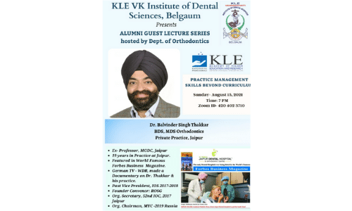 As a part of Alumni series guest lecture, Dr Balvinder Singh Thakkar delivered a talk on PRACTICE MANAGEMENT SKILLS beyond curriculum on 15th August 2021