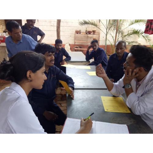 On the occasion of No Tobacco Day, the Department of Public Health Dentistry organized a camp in collaboration with the NSS unit of KLE VK Institute of Dental Sciences in the Kangrali industrial area. Dr. Roopali Sankeshwari delivered a health talk to over 100 factory workers. The program received an overwhelming response from the factory workers, who not only absorbed the message but also sought further support by returning for dental check-ups and tobacco counselling sessions in the following days.