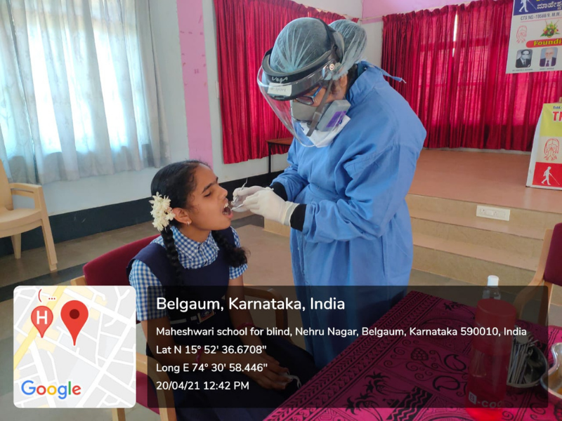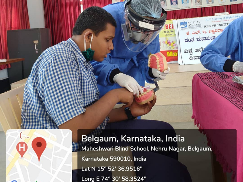 An extensive camp was organized by the Department of Public Health Dentistry for visually impaired children of Maheshwari Blind School, Belagavi on 10th April 2021. The camp involved one-to-one reinforcement of brushing technique, diet, and oral health education. Salivary physical and microbiological parameters were also assessed of the children. Dr. Apurva Deshpande conducted camp along with 3 interns. A total of 26 children benefited from the camp.