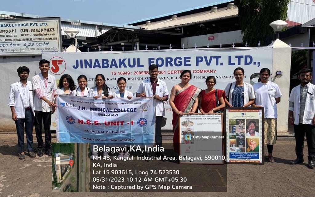 FRIDAY, MAY31, 2024 | Public Health Dentistry| On the occasion of World Tobacco Day on May 31st, 2024, the Department of Public Health Dentistry at KLE VK Institute of Dental Sciences, Belagavi, in collaboration with NSS unit of JNMC organized a free dental camp at Jaihind Factory, Belgaum. Free dental check-ups, along with screenings for premalignant and malignant lesions was conducted. The program also included educational sessions about the harmful effects of