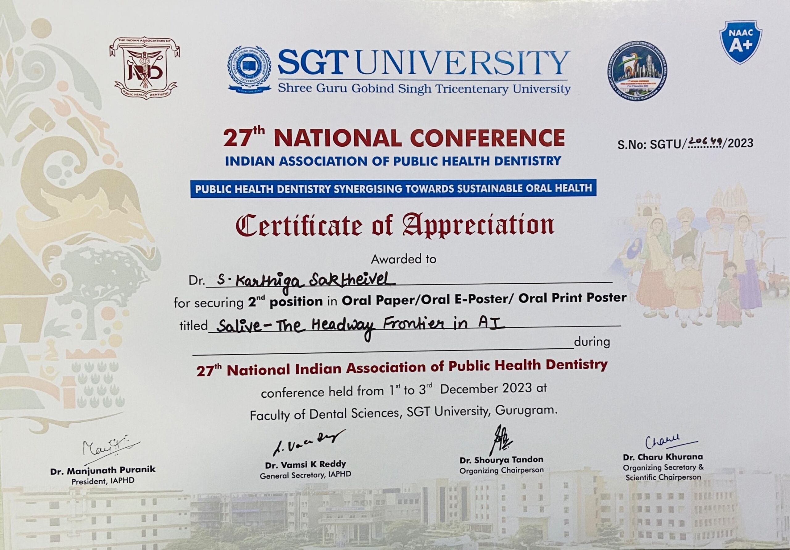 | Dr. Karthiga S, Dr. Kavya Krishnan | First Prize |