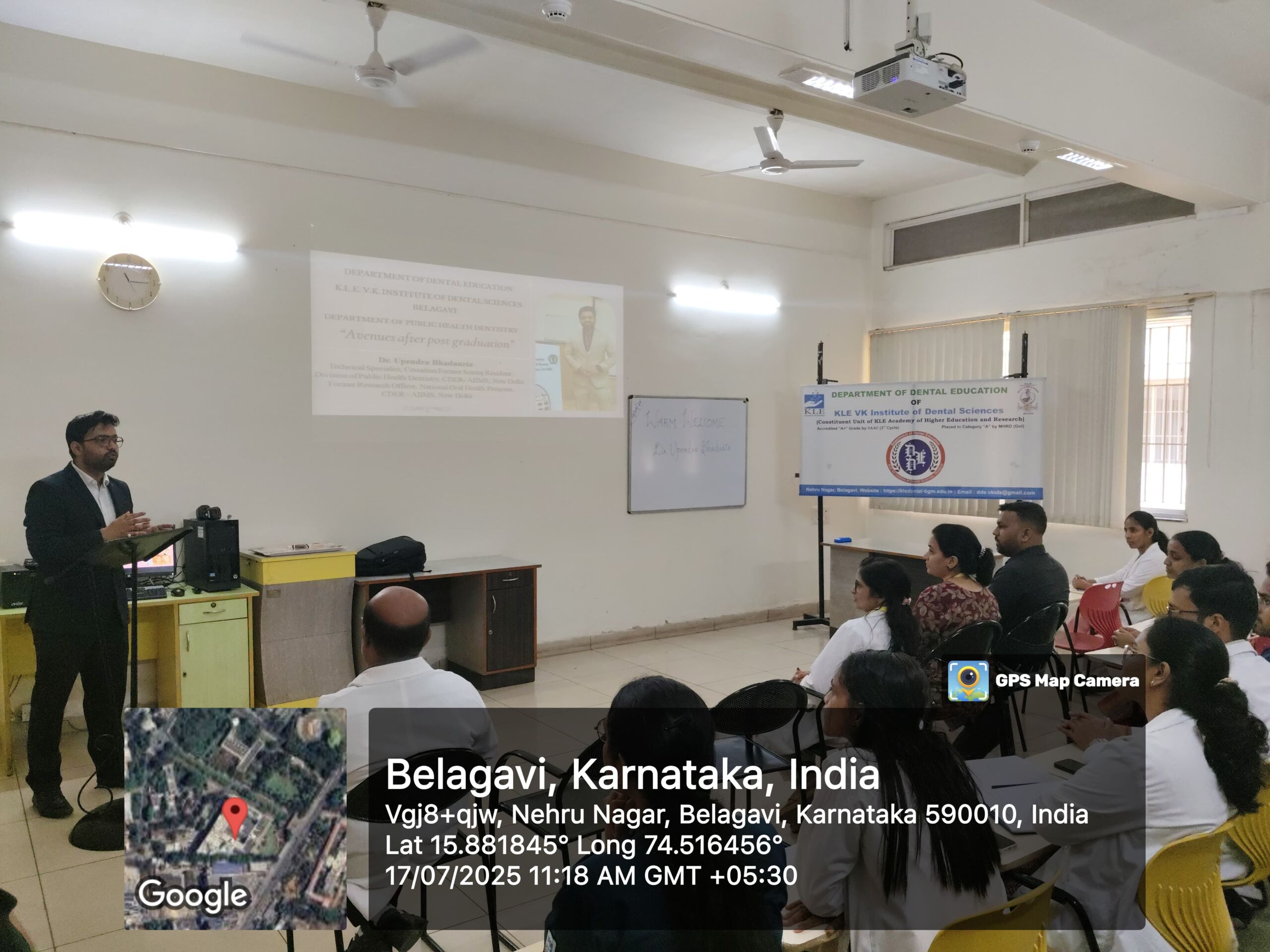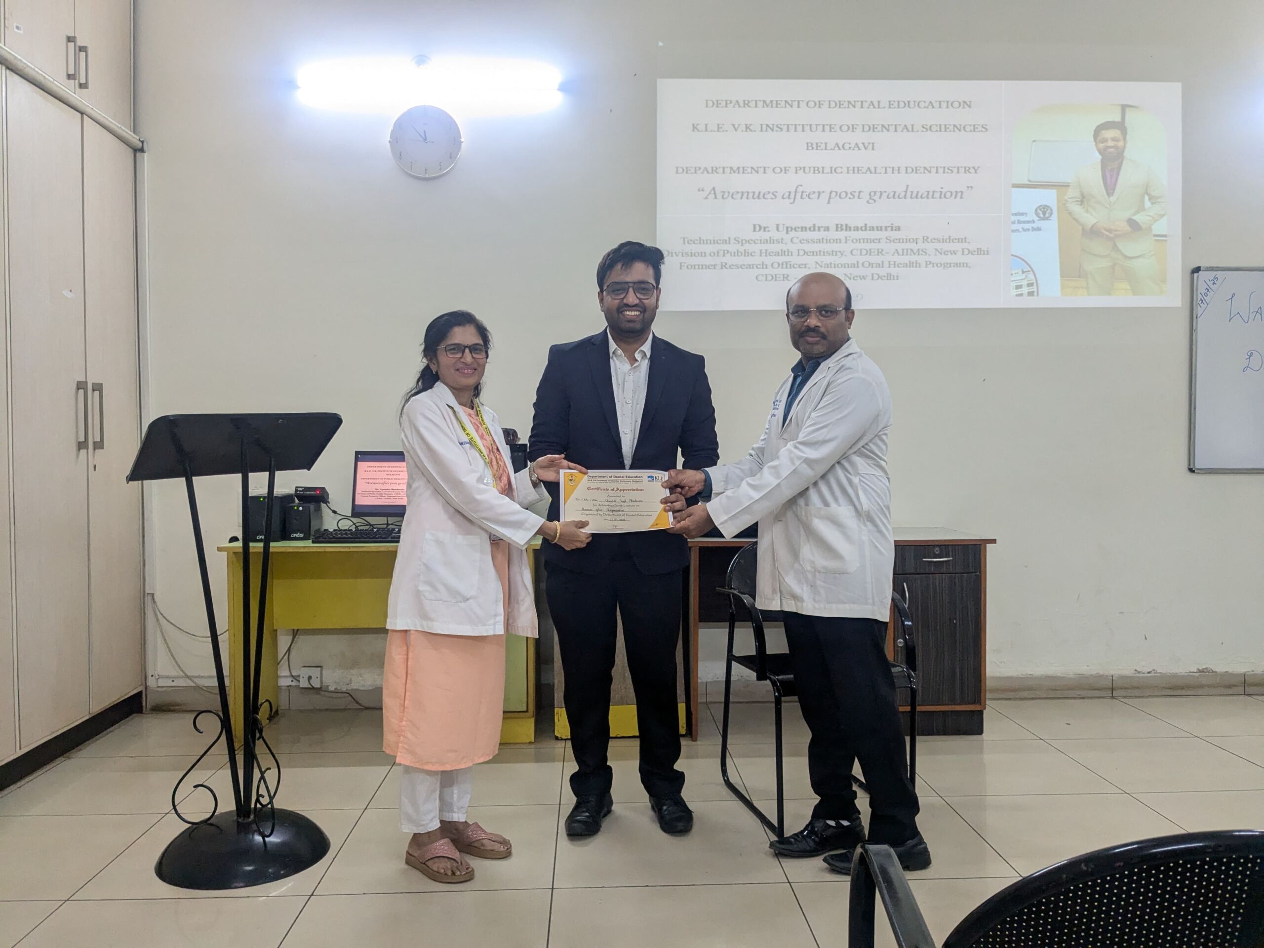 Dr. Upendra Bhadhauria, Technical specialists at Vital Strategies, was invited as a resource person to a guest lecture on ‘Avenues after Postgraduation’ organized by Department of Dental education in collaboration with Department of Public Health Dentistry.