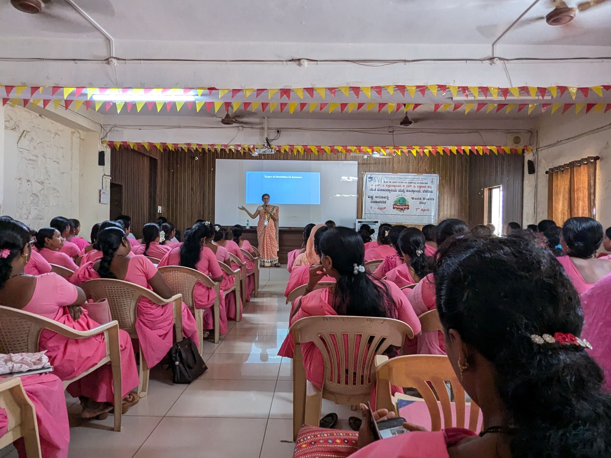 On World Health Day, the Department of Public Health Dentistry at KLE VK Institute of Dental Sciences, Belagavi, organised a screening camp at the Government Taluk Office, Vadgoan on Monday, April 7, 2025. Over 70 ASHA and ANGANWADI workers received free dental check-up. Dr Roopali performed an engaging health education session which enlightened the community workers on the importance of oral hygiene, pregnancy oral health, complemented by a lively demonstration of proper tooth-brushing techniques.
